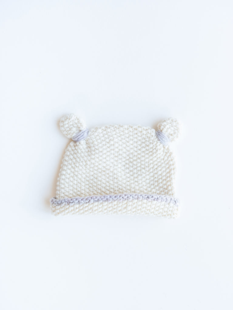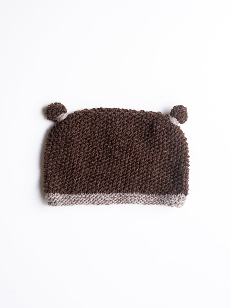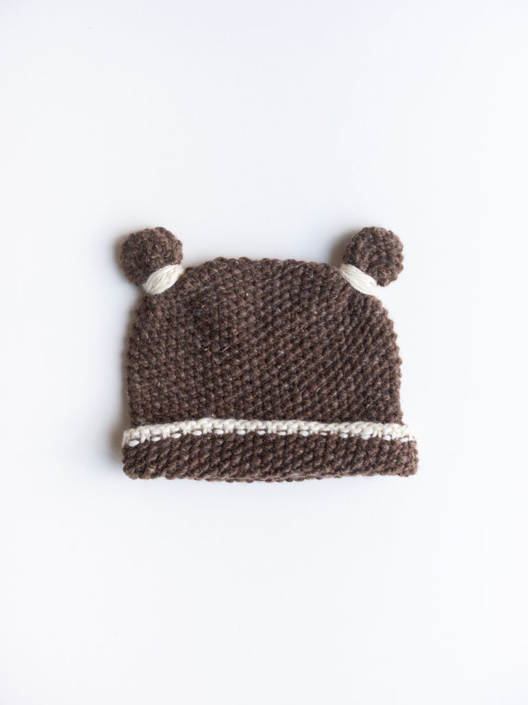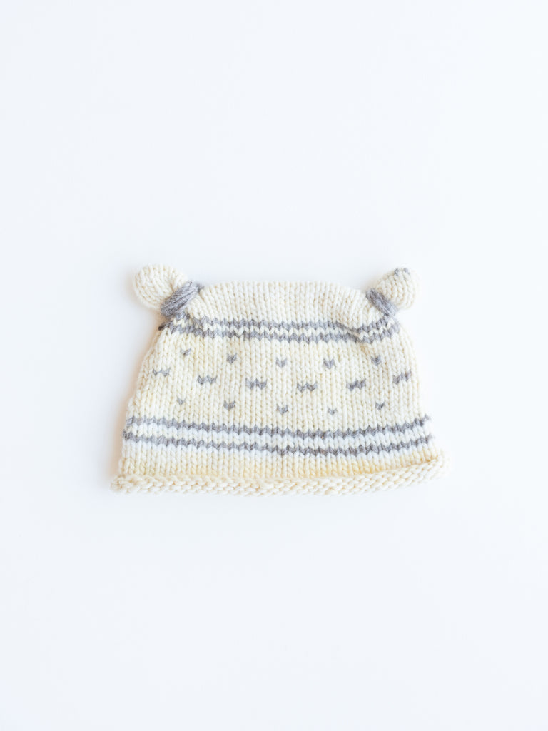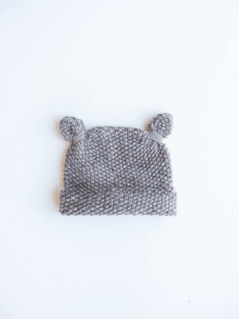 Hand-knitted with ultra-fine merino wool, the Baby Bear Hat is designed for newborns up to 6 months old. It's the ideal gift for a baby shower, offering both warmth & style.