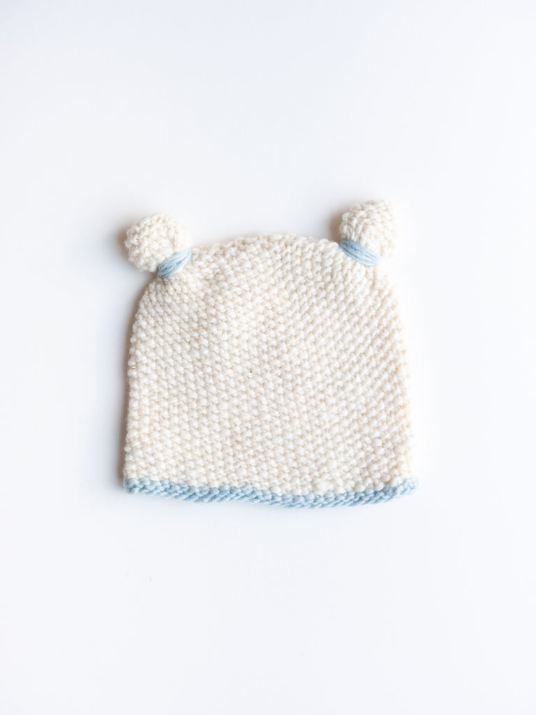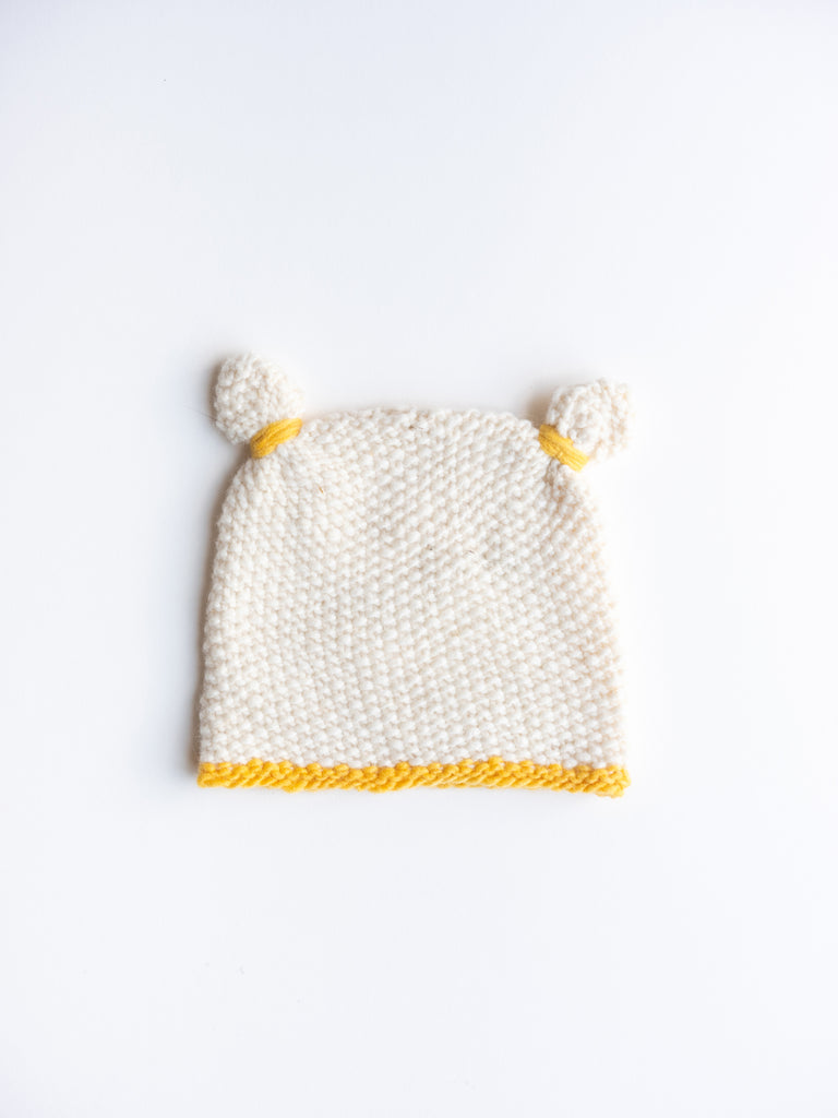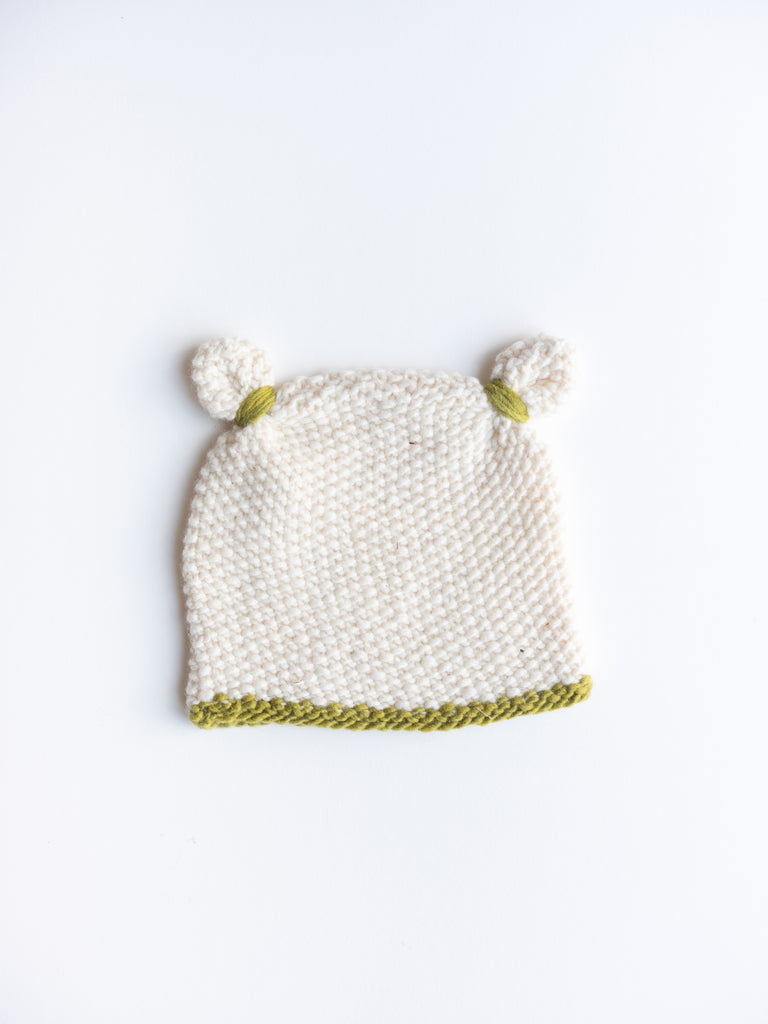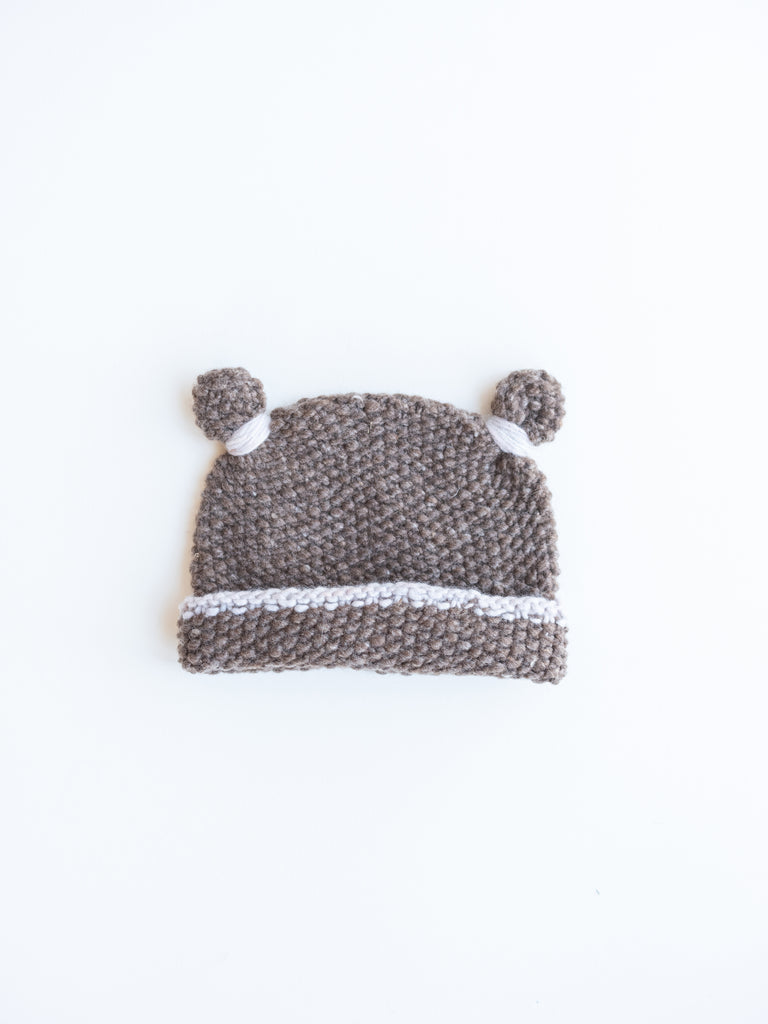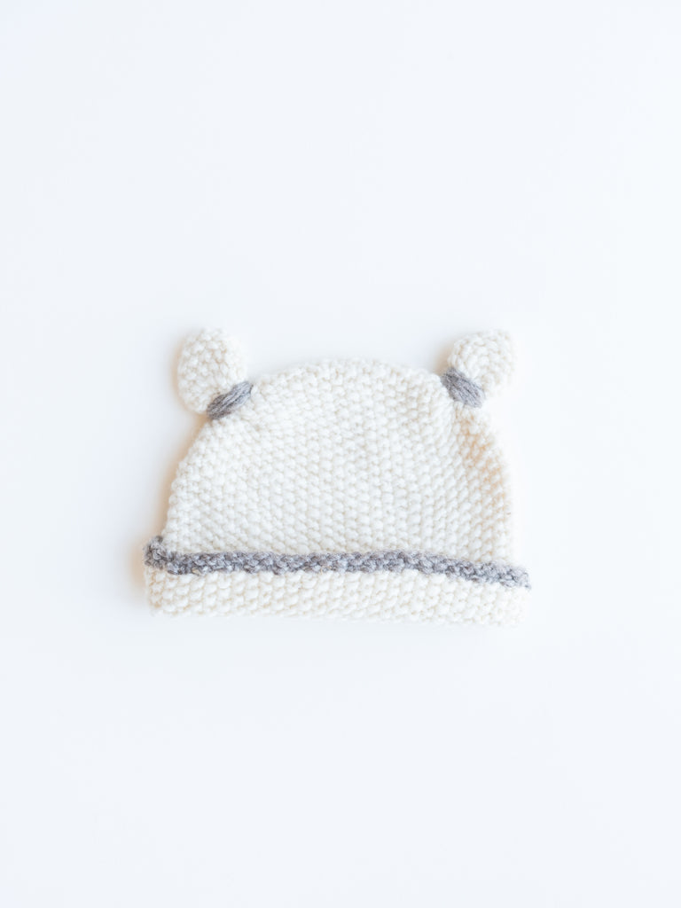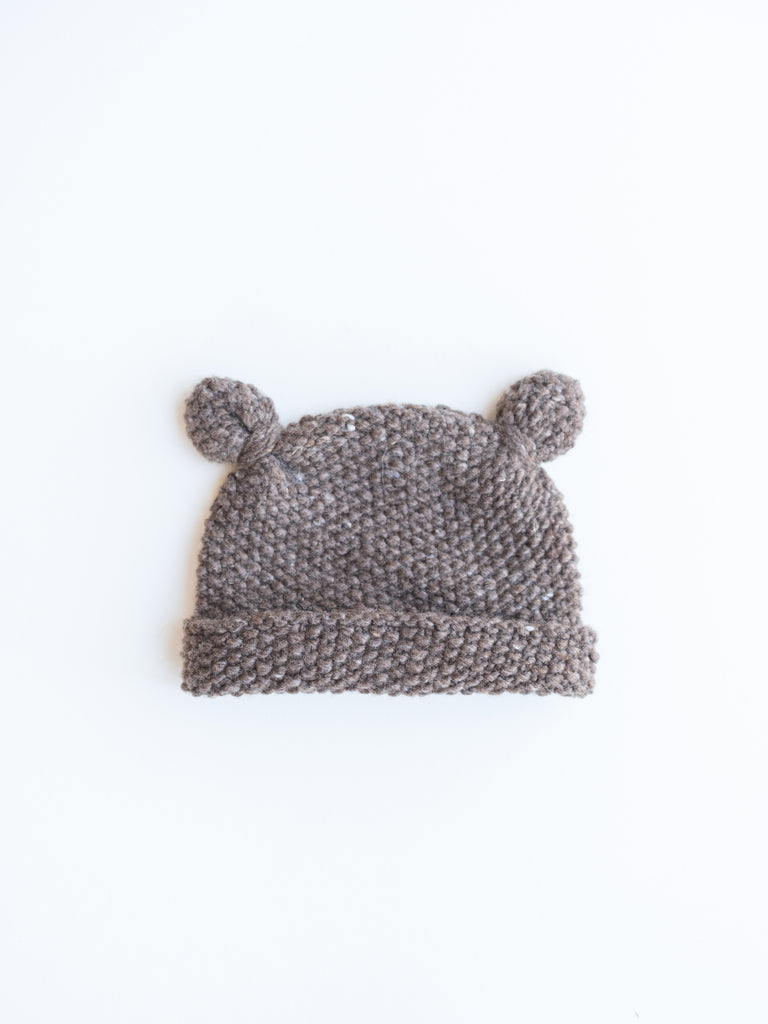 Hand-knitted with ultra-fine merino wool, the Baby Bear Hat is designed for newborns up to 6 months old. It's the ideal gift for a baby shower, offering both warmth & style.