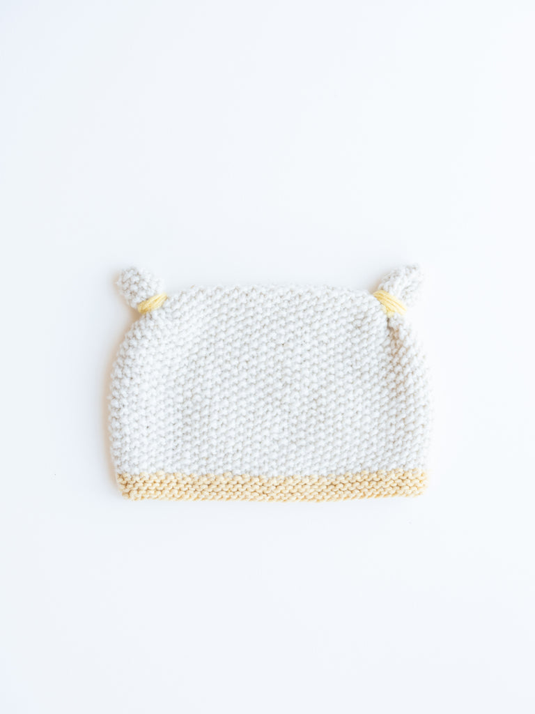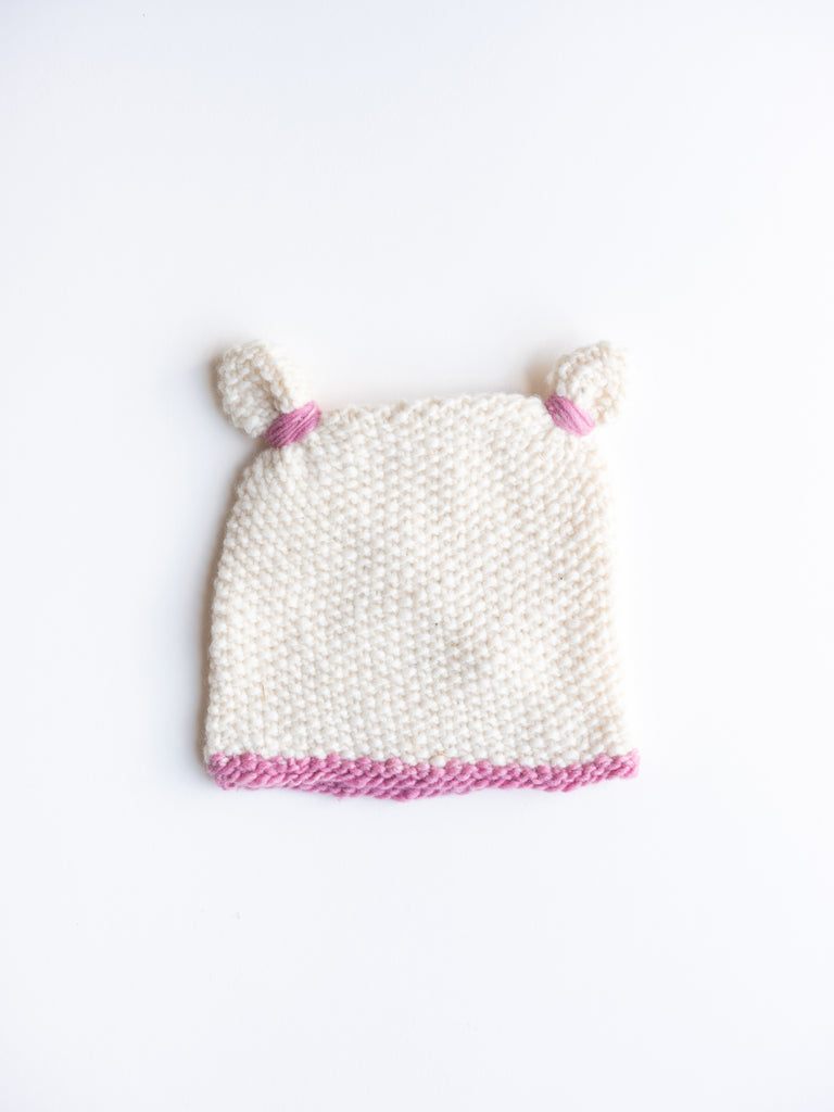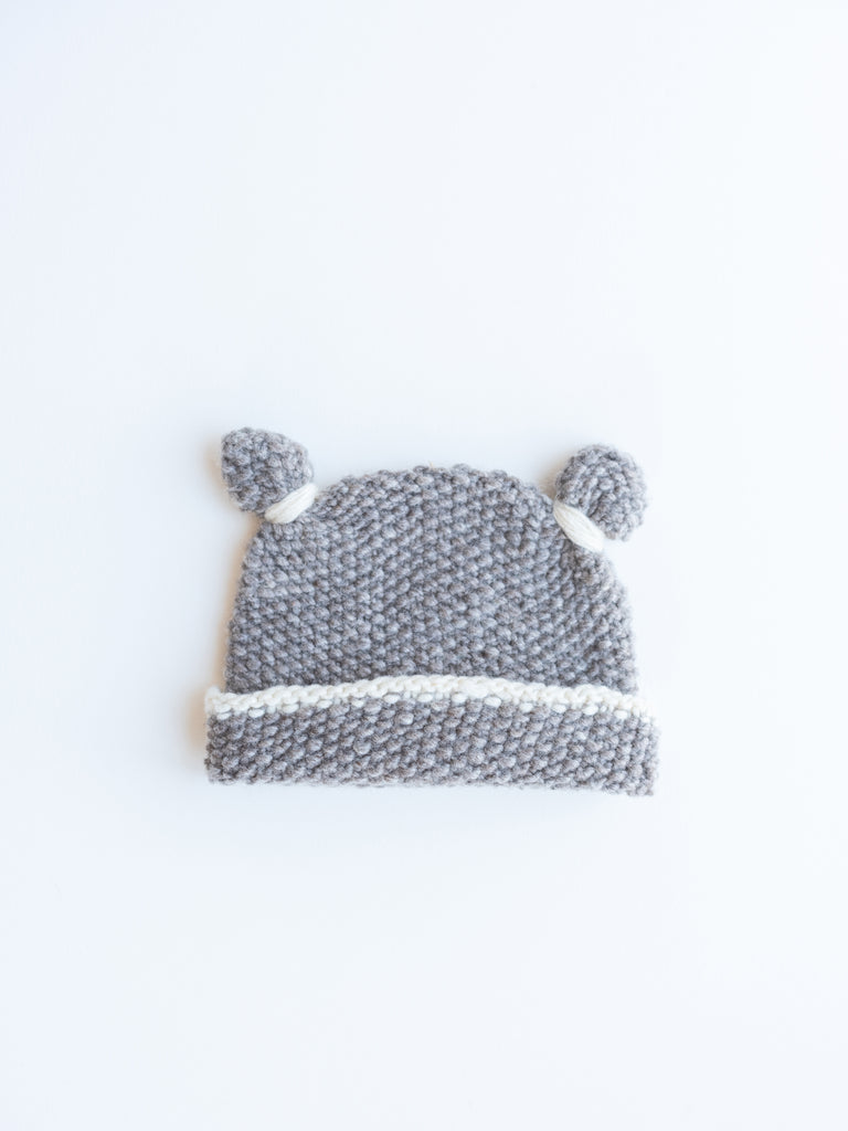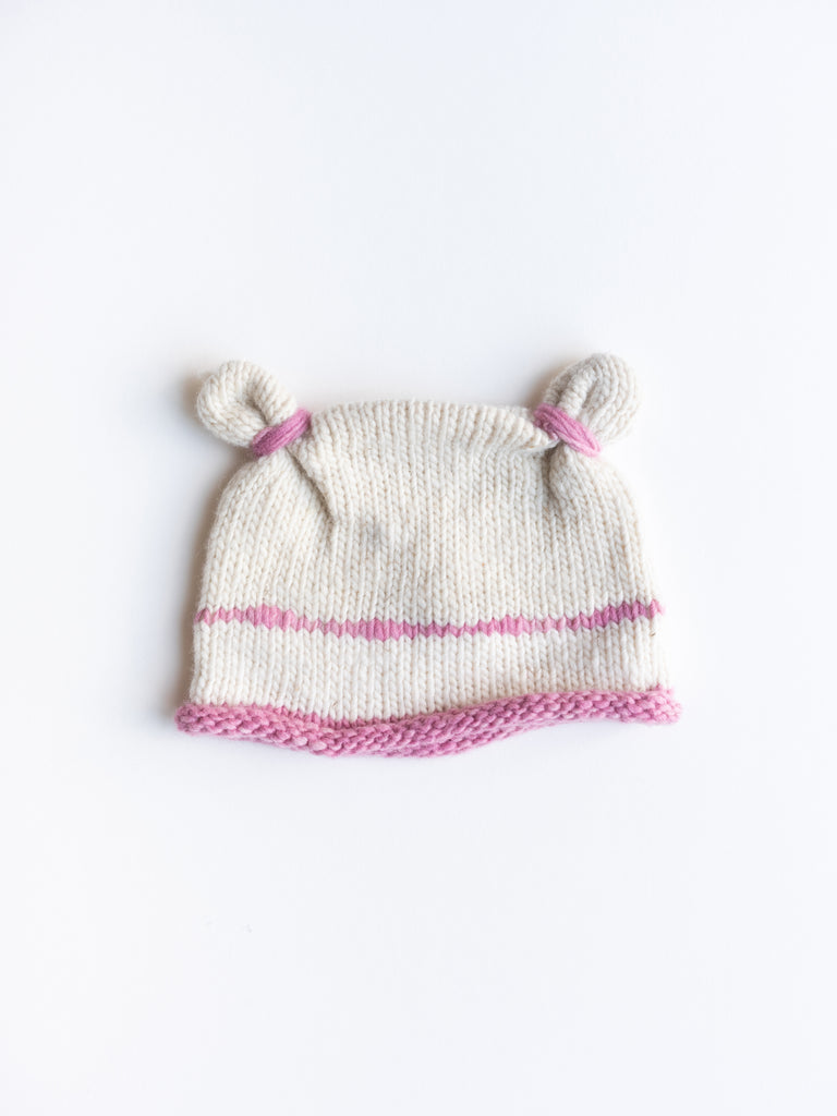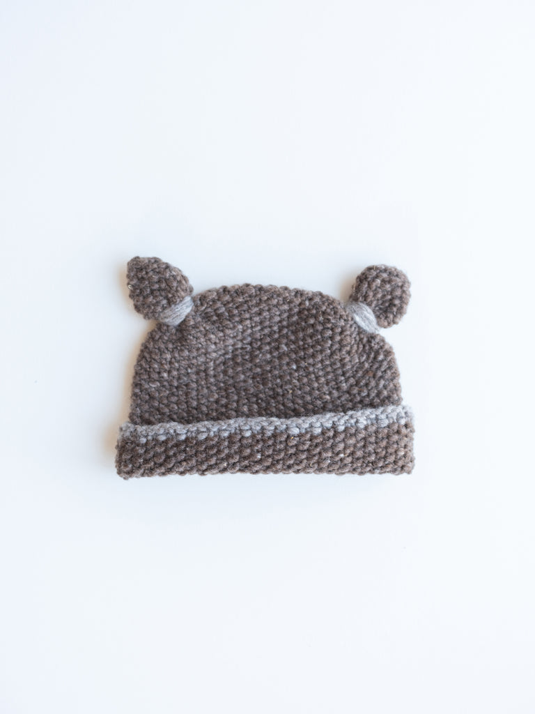 Hand-knitted with ultra-fine merino wool, the Baby Bear Hat is designed for newborns up to 6 months old. It's the ideal gift for a baby shower, offering both warmth & style.