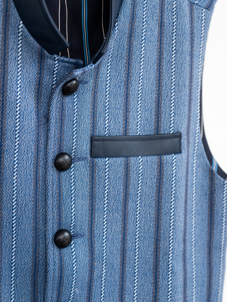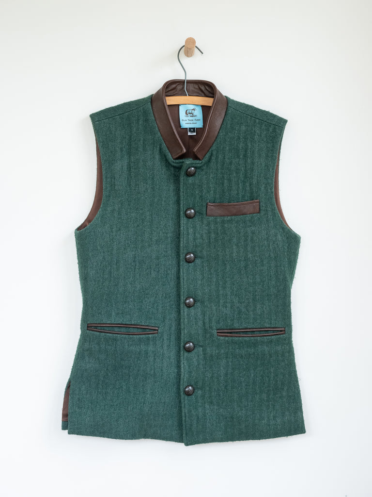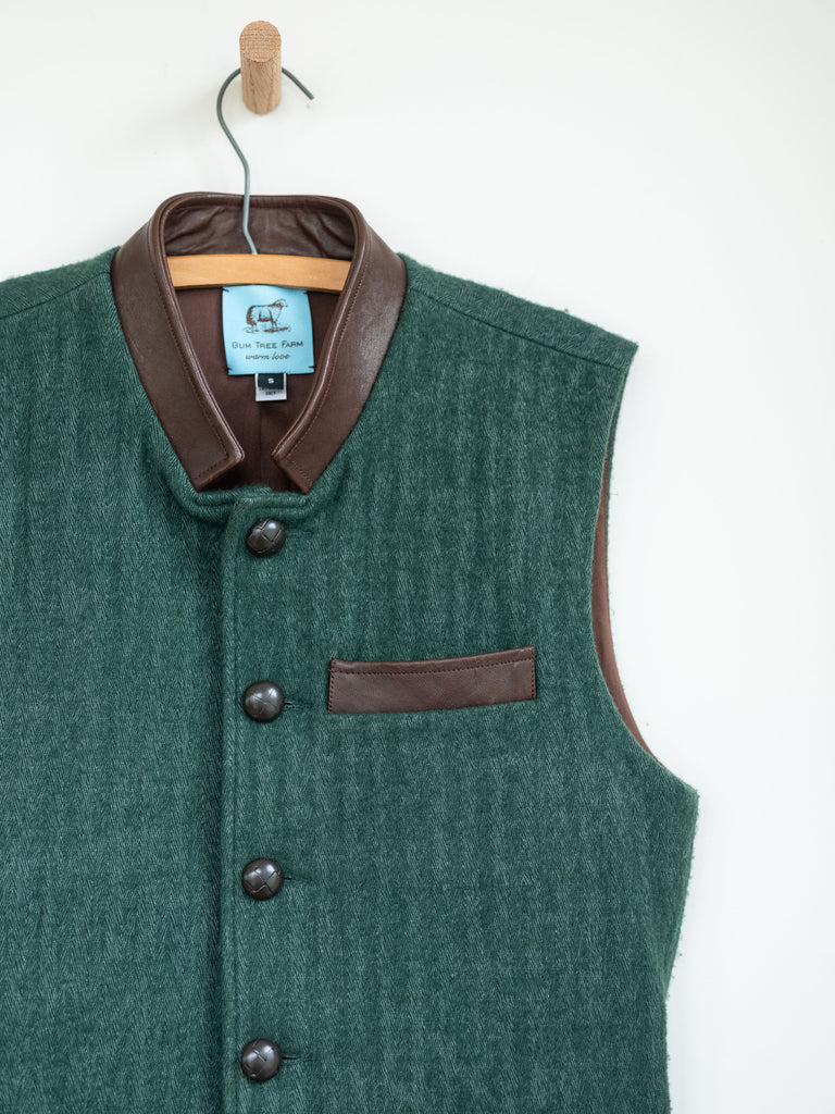 The Trieste Vest, crafted by renowned tailor Martin Greenfield in New York, showcases Gum Tree Farm Design's attention to detail & use of luxurious materials such as ultra-fine merino wool. This timeless garment appeals to both men & women, exuding a classic & sophisticated style.