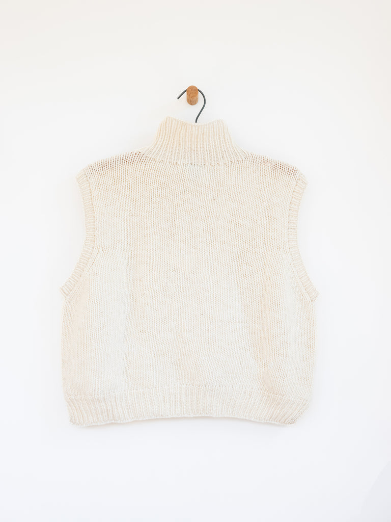 Crafted from a natural cream wool, this Marina Will knitted Sweater Vest comes in one size and is a versatile piece perfect for layering.