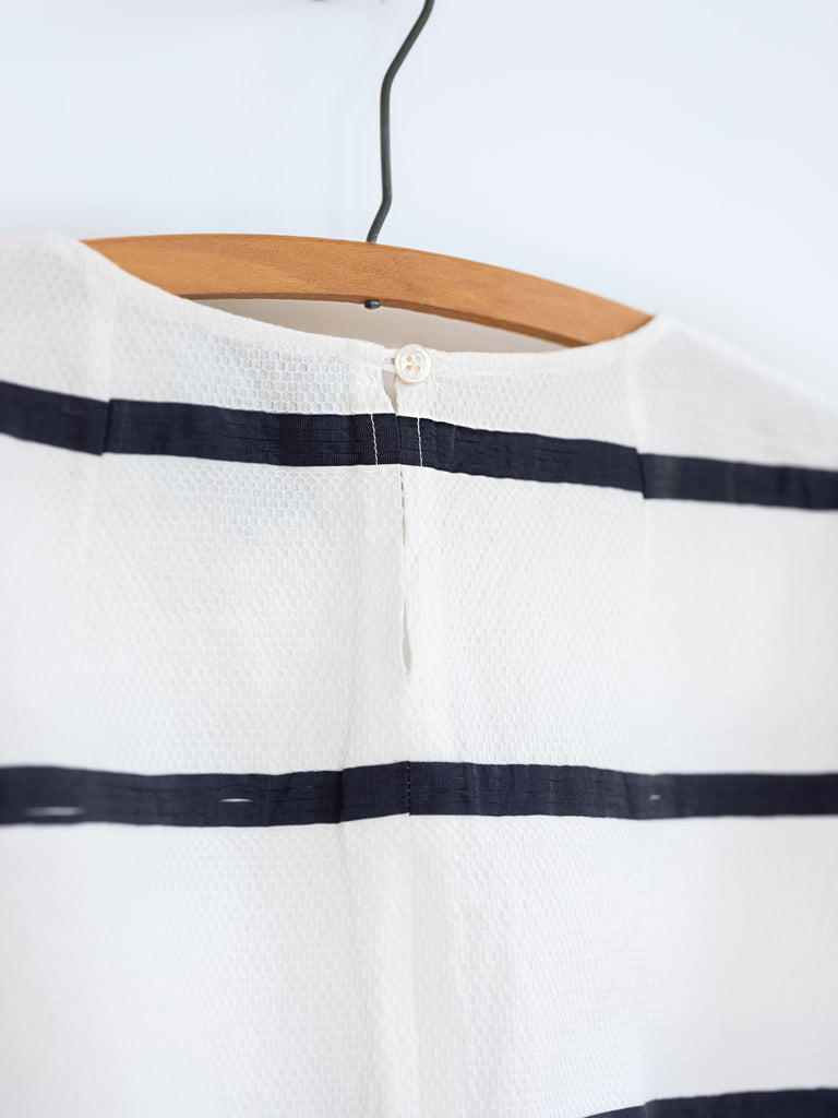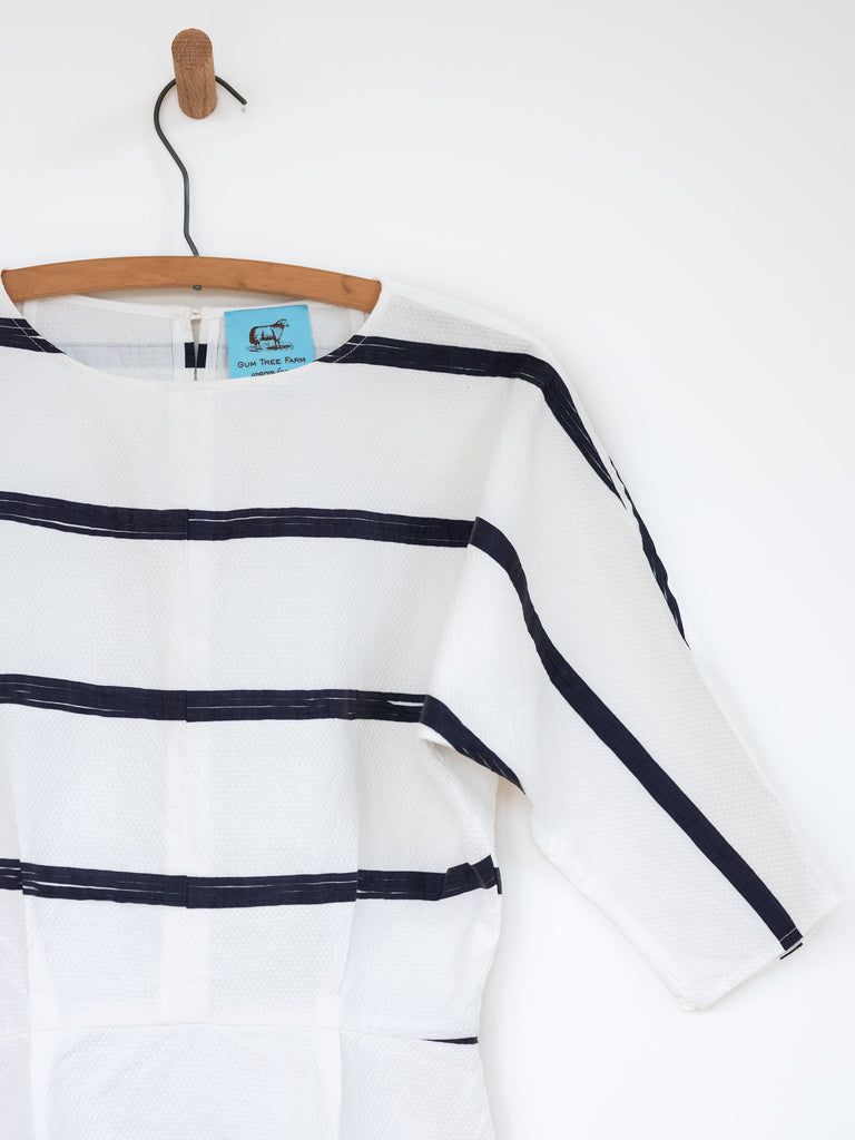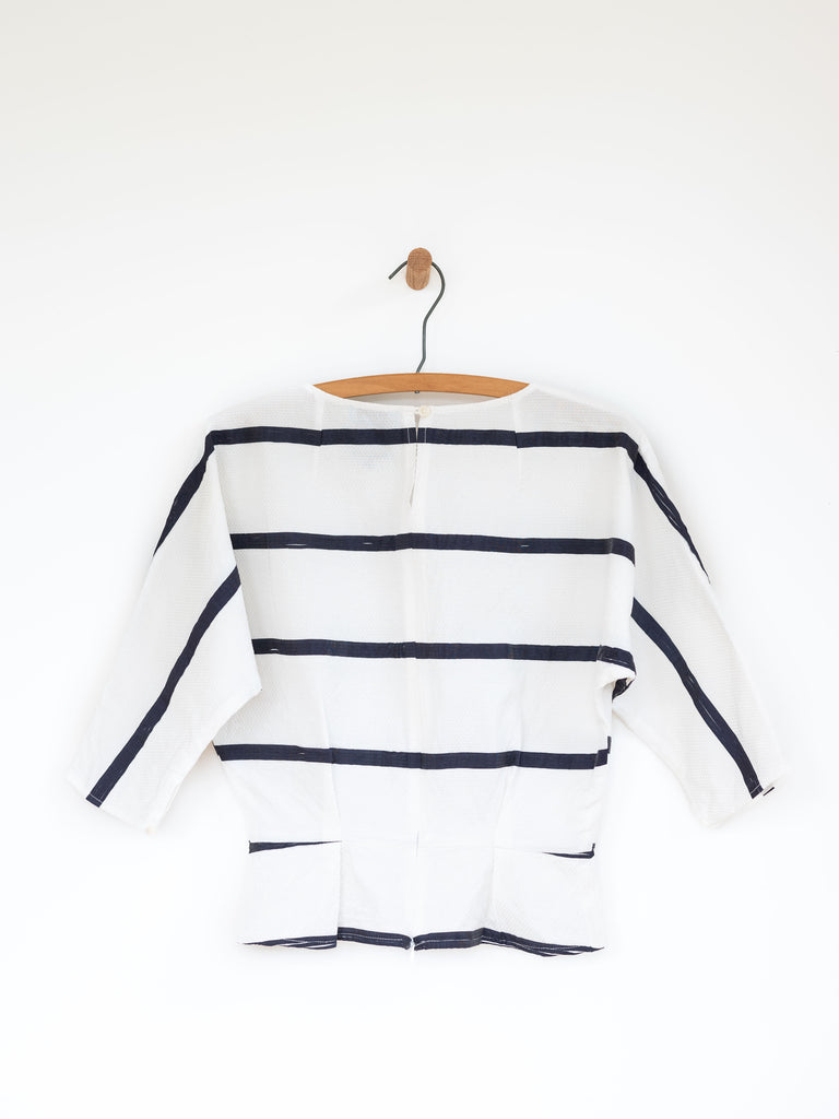 Experience our timeless Kimono Top now available in a cotton variation, perfect for any season. It boasts the beloved features in a clean, refreshing white & navy stripe design that will never go out of style.