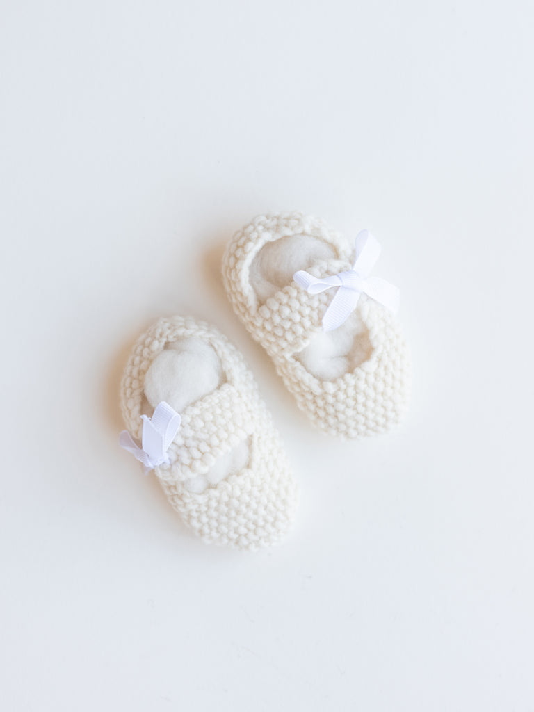 Handmade from organic wool, these knitted Baby Mary Janes are designed to fit little feet aged 6-12 months.