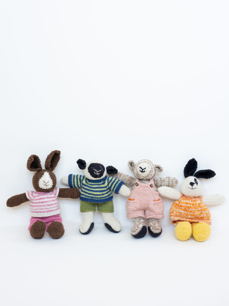Assorted colors available in bunny or lamb. Each animal is one of a kind.
