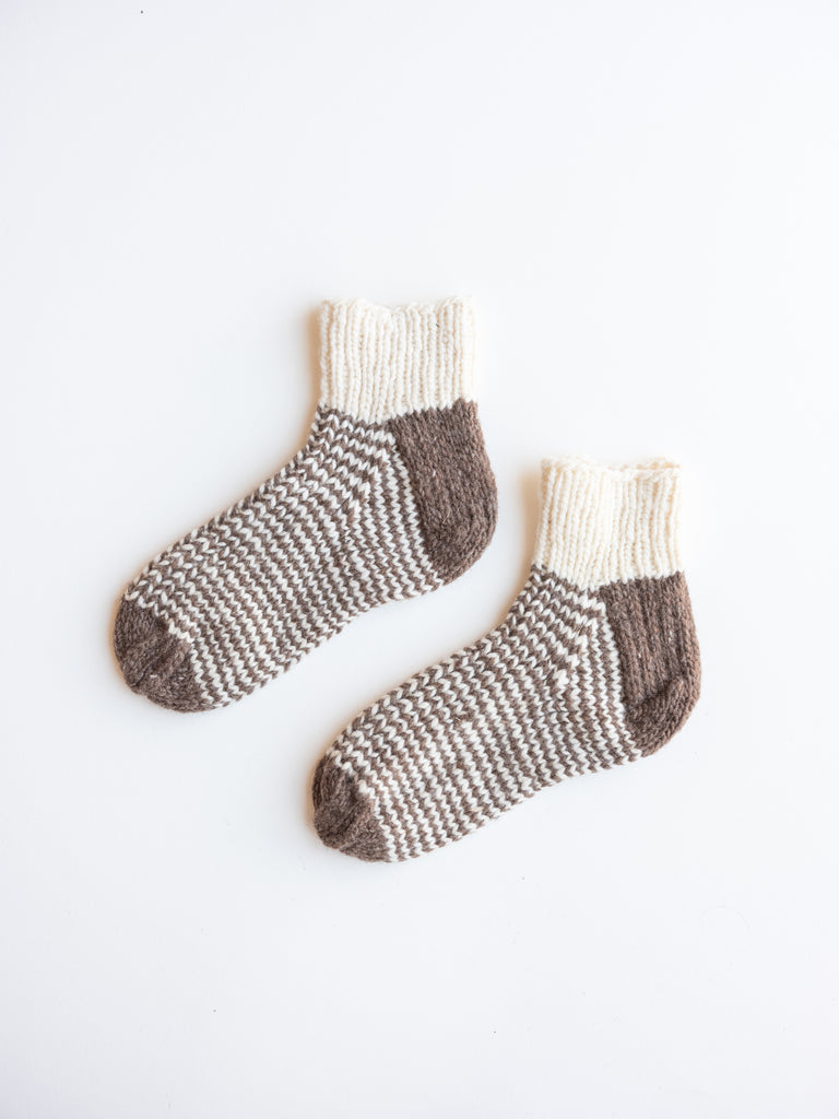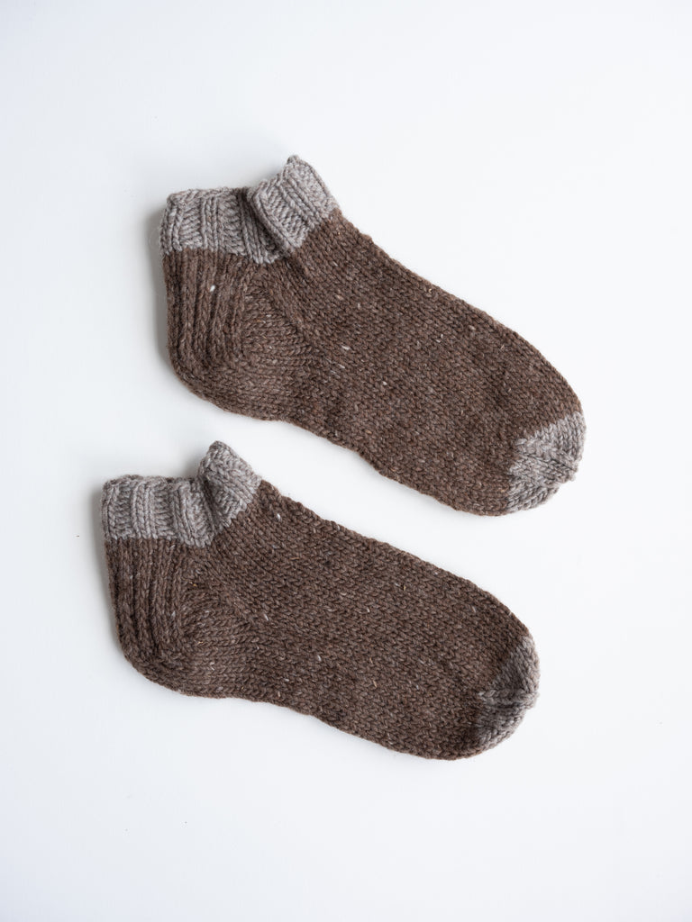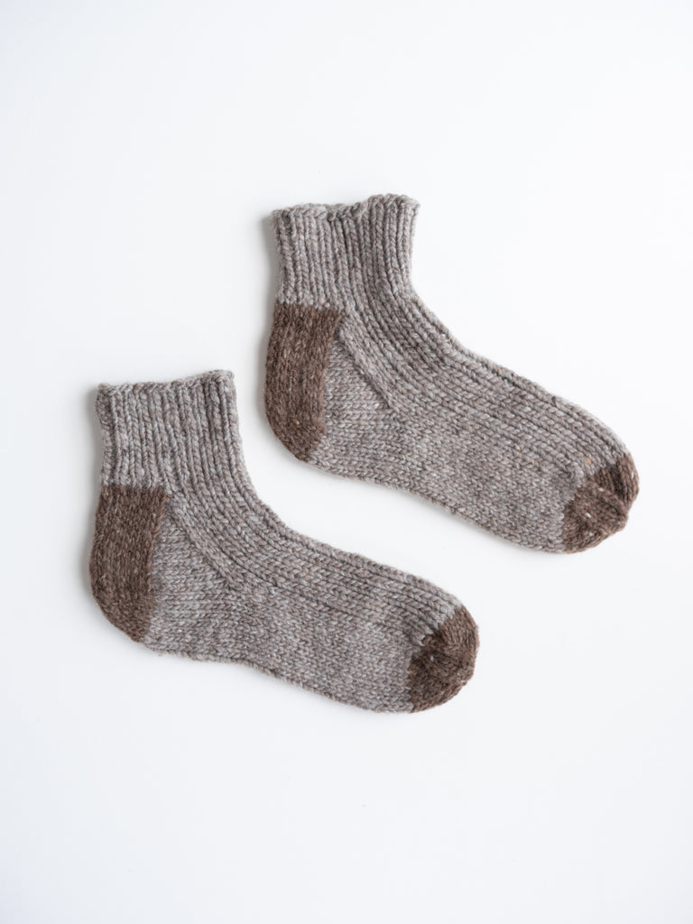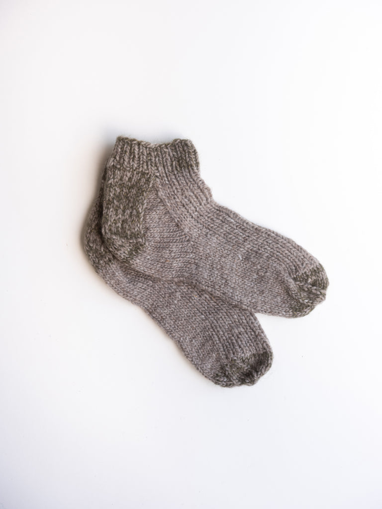 Hand-knitted with ultra-fine Merino yarn, Gum Tree Farm Short Socks come in an array of unique colors.
