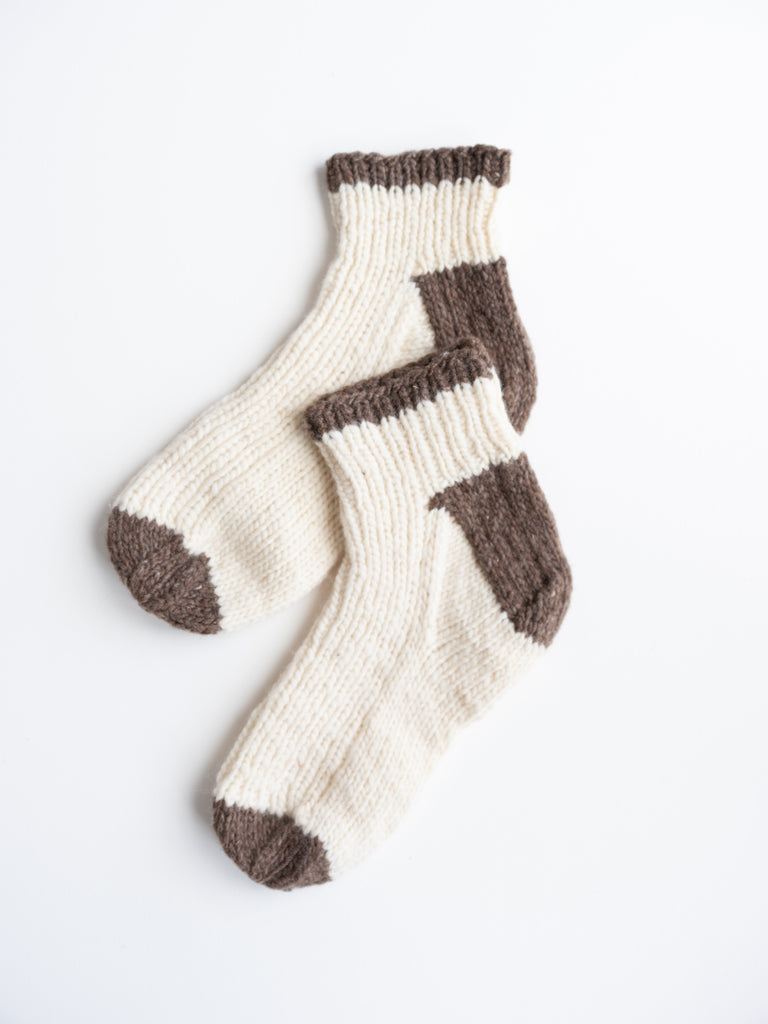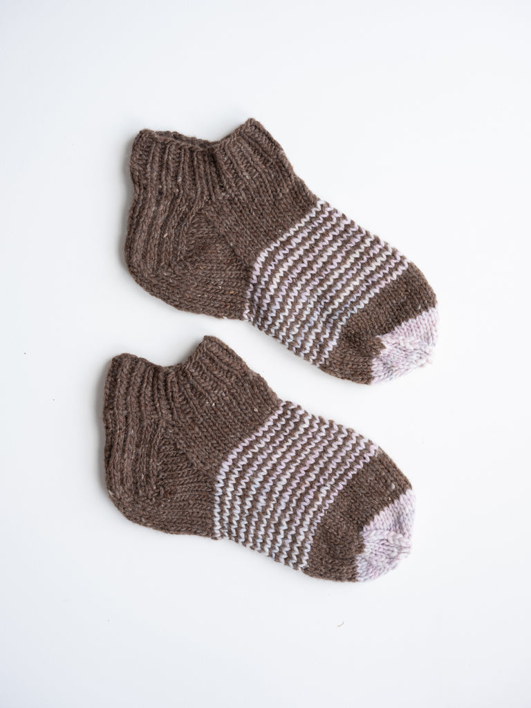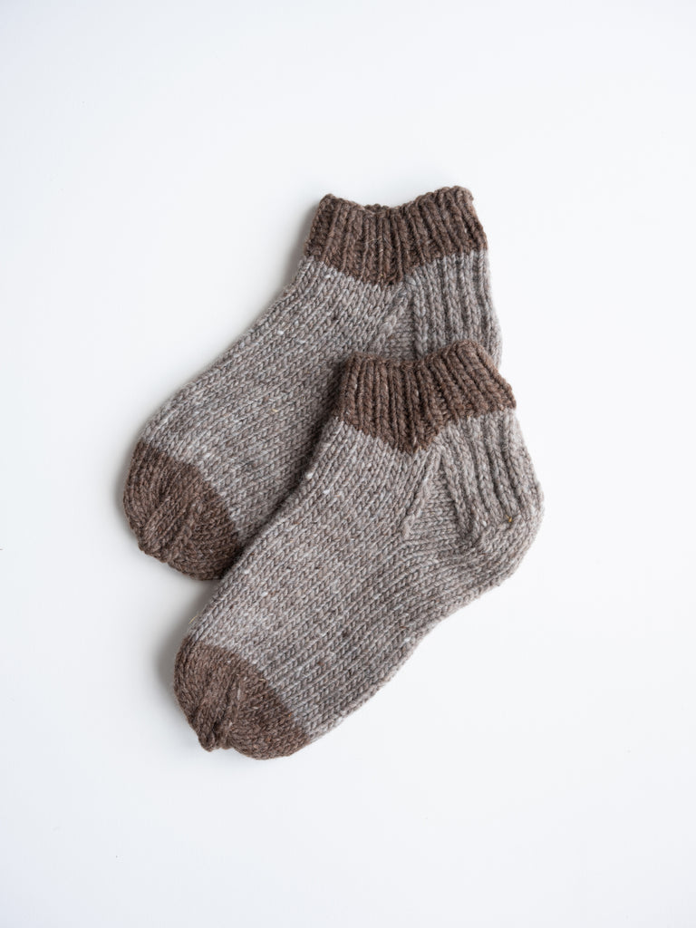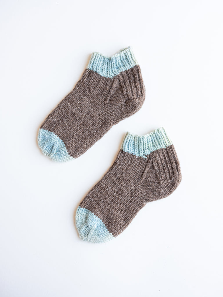 Hand-knitted with ultra-fine Merino yarn, Gum Tree Farm Short Socks come in an array of unique colors.